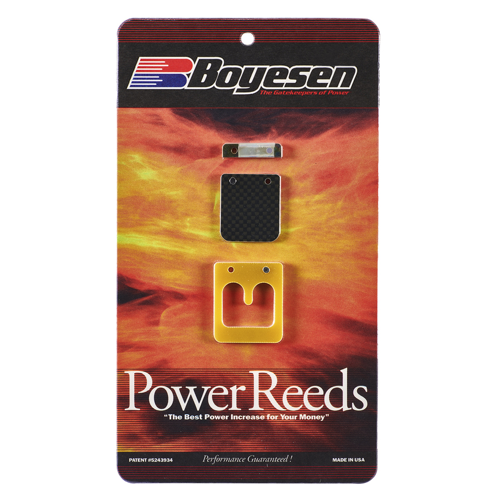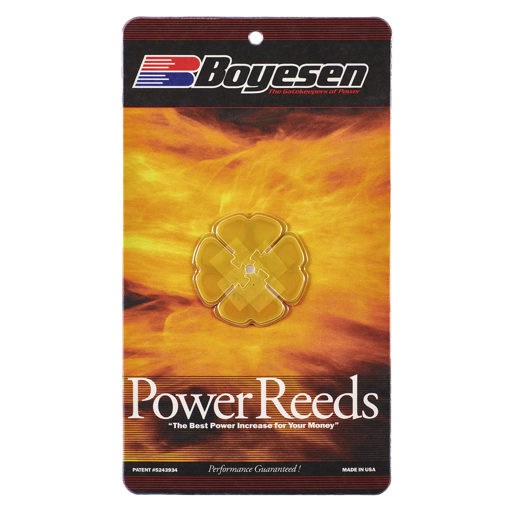 One reed petal is NOT enough! The reed petals in all 2 stroke engines take an incredible amount of abuse! At peak RPM, reed petals are opening and closing hundreds of times per second. Over time, a single reed loses its ability to regulate flow rates in proper proportions. This causes a loss of reed petal reaction and reduces the consistency of peak horsepower. Boyesen's revolutionary dual-stage reed design delivers more usable power than stock. Stock single-stage reeds operate most effectively within a relatively narrow RPM range and are limited because of the single stage design. Boyesen's one soft reed on top of one firm flow-through reed gives you a wide range of intake control, plus increased intake velocity. Your original reeds can't possibly duplicate that performance. The dual-stage design allows you to replace your stock reed stop with a Rev-Plate which permits the reeds to open freely and function efficiently. The multi-port feature of the bottom reed creates more channels for the charge, delivering increased velocity to the intake ports and generating more overall power. Dual-stage reeds work in unison to perform efficiently throughout the entire powerband. The difference in stiffness between the top reed and the bottom reed allow the reeds to respond quickly and accurately to changes in engine pressure. This translates into quicker acceleration, crisper throttle response and increased horsepower throughout the powerband.
